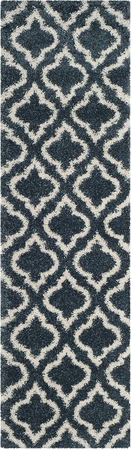 This luxurious Hudson Shag by Safavieh displays classic tile designs set in a thick, plush shag pile. Moroccan inspired patterns stretch across the lush pile of this contemporary styled shag floor covering. Ideally styled to add comforting textures to urban or mod décor with durable, easy-care yarns that will stand tall even in high traffic living areas.